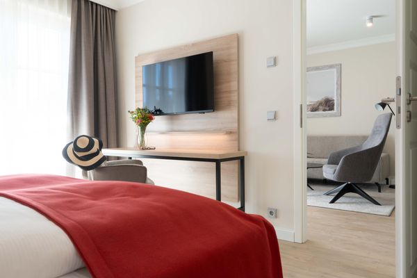 Das Apartment verfügt über ein Wohnzimmer mit TV. Der Esstisch und die integrierte Einbauküche bieten ausreichend Platz für einen gemeinsamen Kochabend. Das Schlafzimmer verfügt über ein Doppelbett und TV. Das Badezimmer ist mit einer ebenerdigen Dusche ausgestattet. Ein Pkw-Stellplatz steht in der Tiefgarage zur Verfügung. Fahrräder können dort ebenfalls abgestellt werden.